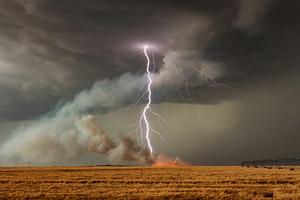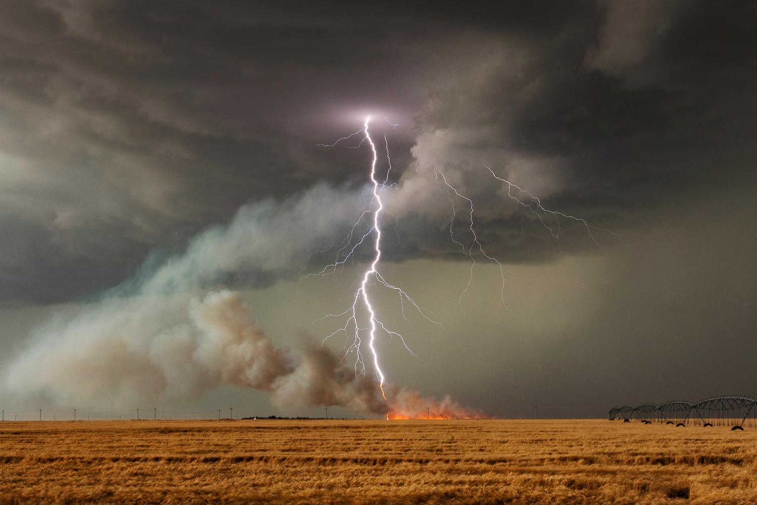 An already ongoing wildfire caused by lightning gets struck again! Image taken in Southwest Kansas